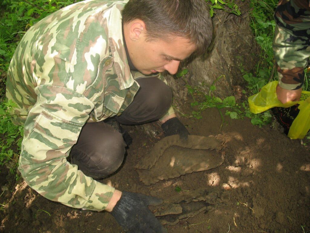 Имя солдата, обутого в лапти, нам установить не удалось. А спустя полгода в нескольких сотнях метров от места обнаружения было найдено колесо от разбитой пушки. Вся резина с колеса была срезана и израсходована на лапти.