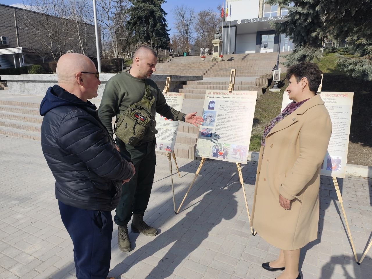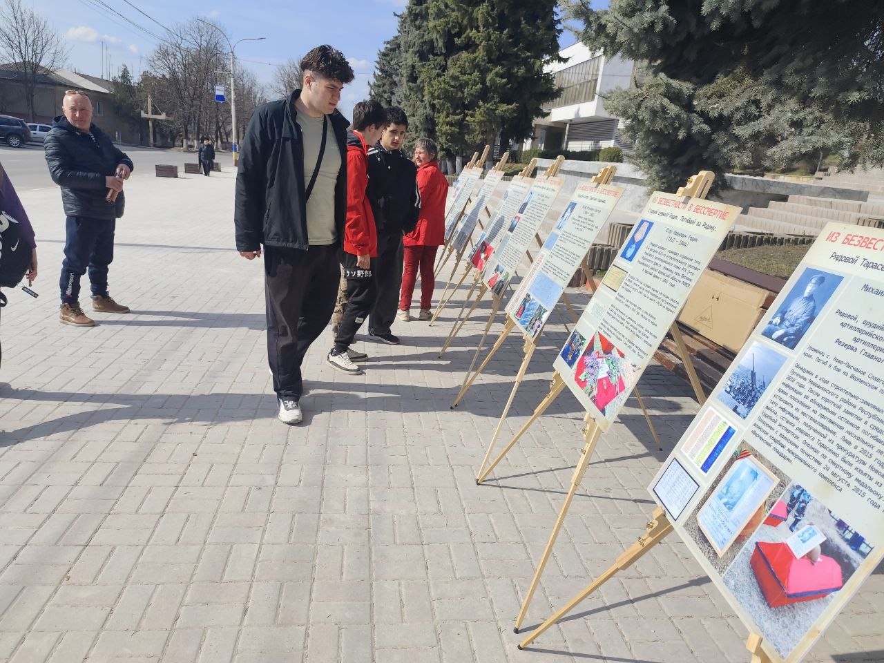 В продолжение праздничных мероприятий в центре города прошла презентация выставки фотографий и документов «Из безвестности в бессмертие», повествующей о судьбах солдат и офицеров Красной армии, чьи имена удалось восстановить в ходе полевых и архивных поисковых работ. Почётным гостем экспозиции стала вице-председатель Рышканского района Лидия Дынченок, познакомиться с материалами выставки пришли учащиеся городских лицеев и школ.