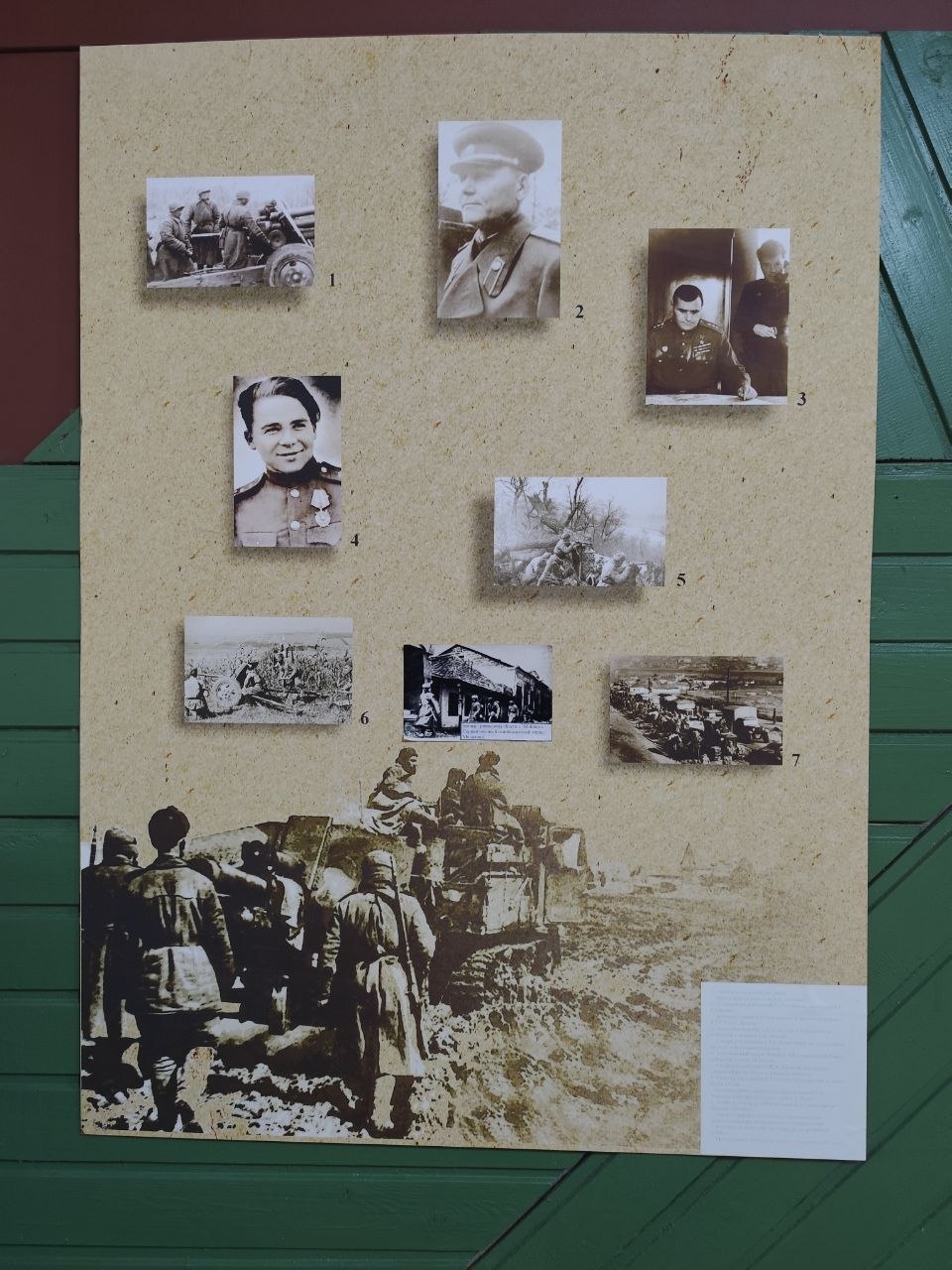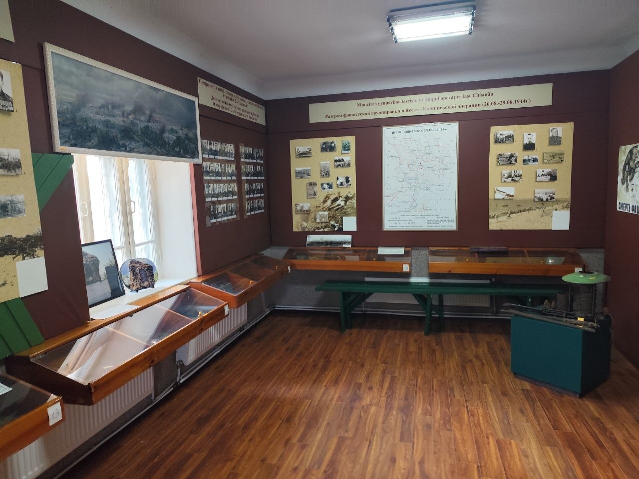 Экспозиция музея включает в себя военную форму участков Ясско-Кишиневской операции, фронтовые письма и фотографии, личные вещи ветеранов Великой Отечественной войны, образцы батальной живописи, реликвии, найденные на местах сражений.