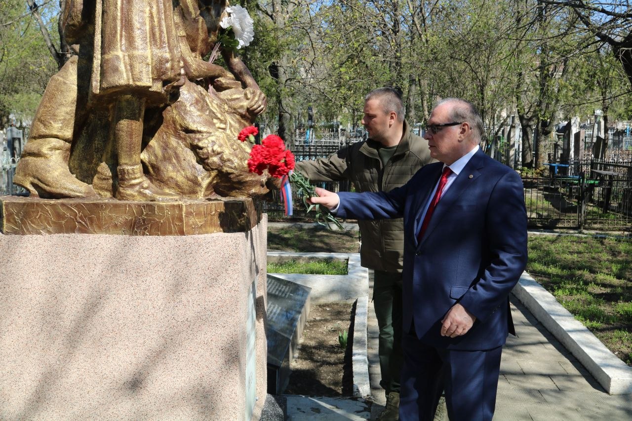 Вместе с Чрезвычайным и Полномочным послом Российской Федерации в Республике Молдова Олегом Озеровым посетили воинское кладбище города Оргеева и возложили цветы к братской могиле советских воинов, погибших за освобождение города весной 1944-года.