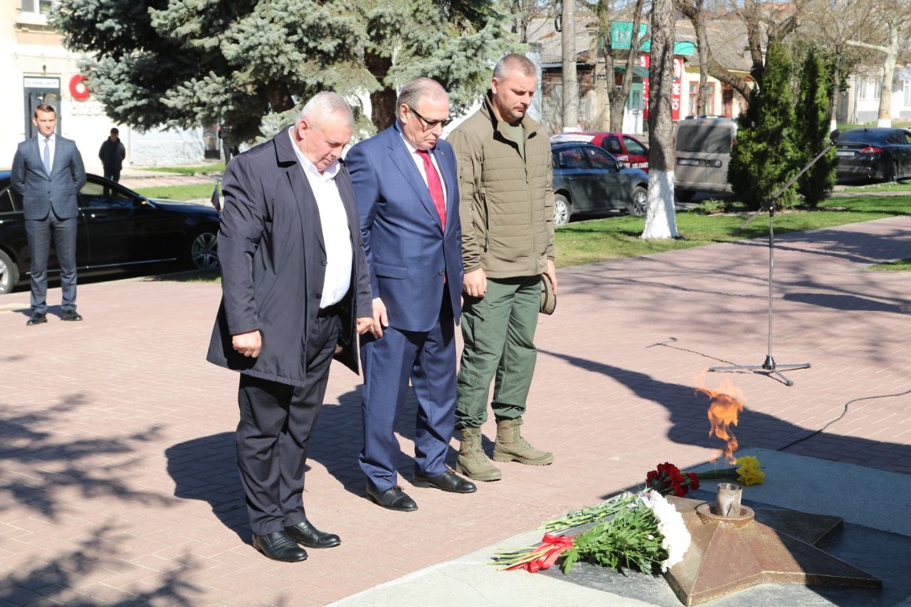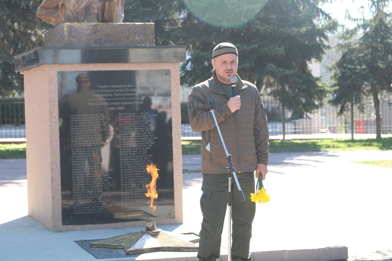 Жители Оргеева и почетные гости возложили цветы к братской могиле советских воинов-освободителей, погибших весной 1944 года в боях с румыно-немецкими нацистами, почтили память павших минутой молчания.